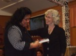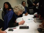 Pip signs a book for Matilda Newland, a fellow singer in the Wellington Community Choir.