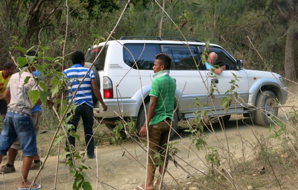 You have to be an all-rounder in Timor. Here Pat uses his rented 4-wheel drive to help pull a truck out of a ditch.
